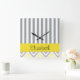 Zigzag, Chevron, Stripes, Yellow, Gray, Your Name Square Wall Clock