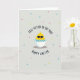 This card features a bright yellow baby bird stepping out of a white eggshell with jagged edges and a blue zigzag crack line, looking extra confident in dark sunglasses 🐇. Its round body, tiny orange beak, and small head tuft give it a cute, self-assured look, like it’s showing off for a friend it can’t wait to see. The background is a soft, muted gray, sprinkled with small round dots in pink, turquoise, and lime green that read like spring confetti 🌷. Centering stays on the bird, with a slight shadow beneath the shell and body to add a touch of depth. Across the top, the phrase “EGG-CITED TO SEE YOU!” sits in dark lettering, arcing above the character so it feels like it’s speaking right to someone special. Along the bottom, “HAPPY EASTER” appears in matching dark text, spaced neatly under the shell for balance. The colored dots are scattered around the bird, with several clustered near the upper corners and a few drifting near the lower edges.