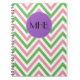 Zigzag Pattern, Chevron, Pink, Green, Monogram Notebook