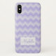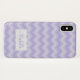 Modern zig zag patterned iphone cover in purple and grey hues. Customize this bold patterned iphone case cover with your name and your family initial or monogram. Currently reads Michelle R. Ideal personalized gift for girls and women. Design by Sarah Trett for www.mylittleeden.com