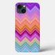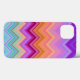 Pretty zigzag pattern of very fine stripes of all colors you can possibly find in a sunset: Shades of orange and pink are dominating, but there is also some yellow, red and purple.