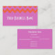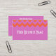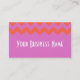 A distinctive business card for many types of business, with a chevron pattern of Magenta Pink and Brilliant Orange zigzags and white lettering. Ready for you to personalize.
