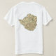 An editable title and slogan accompanies the motif on white triangle with green, yellow, red and black bands to the right of the Zimbabwean flag on the front of this t-shirt. The back displays a detailed map of Zimbabwe.