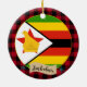 Ornaments: Rustic Zimbabwe decorative ornament featuring Zimbabwe flag surrounded by red and black buffalo plaid pattern - love my country, Christmas decor, national patriots / sports fans