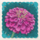 Bring a bit of summer sunshine in and protect your furniture with these colorful coasters. The original painting was done in acrylic, to capture the essence of the last zinnia of the season before the frost.