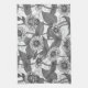 Zinnias, monochome on white kitchen towel