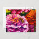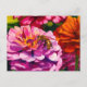 Zinnias with worker bee postcard