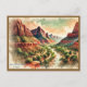 Here’s a vintage-style mountain landscape postcard design with a retro color palette and nostalgic feel.