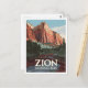 A stunning and nostalgic depiction of Zion National Park, renowned for its towering sandstone cliffs, dramatic canyons, and vibrant landscapes. The design captures iconic sights such as The Narrows, Angels Landing, and the picturesque Virgin River winding through the park. Rendered in a vintage style, the artwork evokes the majestic beauty and adventurous spirit of Zion, inviting viewers to explore its breathtaking scenery, diverse wildlife, and exhilarating hiking trails.