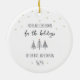 Wonderful black and white trees and copper stars with hand lettered text make this ornament a beautiful keepsake. Add your city, state and zip code to go with the saying No Place Like Home for the Holidays. Makes a wonderful gift for those far and near as they will always remember how special home is. See coordinating items in our shop, Enchanted Finch.