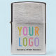 Easily personalize this Zippo® lighter with your own company logo and custom text. Available in brushed chrome silver and other Zippo® lighter finishes and colors. Made in USA. No minimum order quantity and no setup fee.