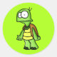 Cute little green cartoon turtle with a brown shell, googly eyes and a little tuft of hair. Original digital cartoon art by Taylor Addams.