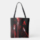 Bag with a bold retro screen-print style design featuring large zippers in red, black and white. A customizable design for you to personalise with your own text, pictures and ideas. Created using an original photograph and digital techniques by Jess Perry.