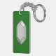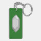 This keychain features a model of a zircon crystal, a common accessory mineral often used to calculate the ages of rocks.