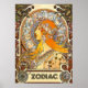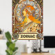 Vintage art nouveau poster of the Zodiac. Profile portrait of a woman with long flowing hair surrounded by the signs of the constellations. From an original 19th century (1896) advertisement by Alfons Mucha. All Rights Reserved © 2014 padre art