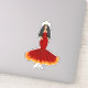 Zodiac Aries Goddess fashion illustration sticker with the word "Aries". The drawing features a woman in a red and orange dress representing the fire sign. It also includes the Aries symbol which is the ram horns. Cute Aries goddess sticker for women born in the Aries season. Great gift for birthdays or Christmas.