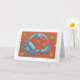 Cancer, the crab, walks on a beach covered with stars. Water sign, June 22 - July 23 (there may be a variation in the dates). Greetings card with an orange, blue and yellow customizable design on the front for you to personalise with your own text, images and ideas and 'Happy Birthday' written inside. An original coloured pencil and metallic ink drawing by Jess Perry.