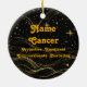 A circular ornament with your Zodiac sign illustration on one side and a name on the other side. The name you chose, name of the zodiac sign and four well known traits of that sign will be printed on the other side of the ornament.