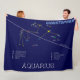 Zodiac Constellation Aquarius or water bearer. The colors of the stars are roughly real. Stars' and space objects' names. The Water Bearer is associated with Deucalion, who built a ship with his wife Pyrrha to survive the great flood. He also is identified as Ganymede, the son of Trojan king Tros, who was taken to Mount Olympus by Zeus to act as a cup-carrier to the gods. Neighboring Aquila represents the eagle that snatched the young boy. Aquarius is the Zodiac constellation. The Sun transits the area along the Ecliptic line between January 21 and February 18. Unique, one-of-a-kind, elegant, funny fleece blanket for anyone. Good to warm yourself during long space travel to the far side of the Universe. Customizable. You can change the image and the template name. You can transfer this design to a variety of other products. Just choose the product from the scrollable option "Transfer design to a product". Do not forget to use the "Personalize", or "Edit design" button (as the case may be), or the blue link "Details" --> "Click to customize further" --> "FILL/FIT" to ADJUST THE DESIGN TO THE SIZE AND SHAPE of the product, to rotate it, to change the position, type, color of the font, or to add your own text from the scratch. Just be creative, customize one, buy, enjoy, and be happy.