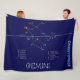 Zodiac Constellation Gemini or twins. The colors of the stars are roughly real. Stars' and space objects' names. Gemini is one of the zodiac constellations, the sun transits it along the Ecliptic line between May 21 and June 20 or so. In Greek classical history, the twins - Castor and Pollux shared the same mother, Leda, but they had different fathers. Pollux's father was the god, Zeus, making Pollux immortal while Castor was mortal. Their sister was Helen of Troy, so they fought in the Trojan War. When the mortal Castor was killed, Pollux asked Zeus to let him share his own immortality with his twin to keep them together, and they were transformed into the constellation Gemini. Unique, one-of-a-kind, elegant fleece blanket for anyone. Good to warm yourself during long space travel to the far side of the Universe. Customizable. You can change the image, and you can change or delete the template name. You can transfer this design to a variety of other products. Do not forget to use the "Personalize", or "Edit design" button (as the case may be), or the blue link "Details" --> "Click to customize further" --> "FILL/FIT" to ADJUST THE DESIGN TO THE SIZE AND SHAPE of the product, to rotate it, to change the position, type, color of the font, or to add your own text from the scratch. Just be creative, customize one, buy, enjoy, and be happy.