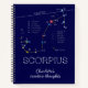 Zodiac Constellation Scorpius or scorpion. The color of the stars is roughly real. Star and space objects' names. According to Greek mythology, Orion boasted to goddess Artemis that he would kill every animal on the Earth. Artemis decided to protect animals. She and her mother Leto sent a scorpion to deal with Orion. The scorpion killed Orion in a battle. Zeus, who watched the lively performance, raised the scorpion to heaven and did the same for Orion as a reminder for mortals to curb their pride. Scorpius is a zodiac constellation. The Sun transits this area along the Ecliptic line between October 23 and November 21. Unique, one-of-a-kind, beautiful, and funny spiral notebook for anyone to write down valuable insights. Customizable. You can change images, and you can change or delete template texts on the front and on the back. Do not forget to use the "Personalize", or "Edit Design" (as the case may be) button. It will transfer you to the "Designer Tool" area where you can use the "FILL/FIT" option to ADJUST THE DESIGN TO THE SIZE AND SHAPE of the product, to rotate it, to change the position, and color of the background, etc. Just be creative, enjoy, and be happy.