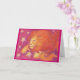 Leo the lion catches falling stars. Fire sign, July 24 - August 23 (there may be a variation in the dates). Greetings card with a gold, orange, pink and purple customizable design for you to personalise with your own text, images and ideas. An original coloured pencil and metallic ink drawing by Jess Perry.