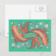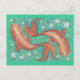 Pisces, the fish, swimming in a star-filled river. Water sign, February 20 - March 20 (there may be a variation in the dates). Postcard with an orange, blue and green customizable design for you to personalise with your own text, images and ideas. An original coloured pencil and metallic ink drawing by Jess Perry.