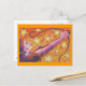 Sagittarius the archer stands against a sky filled with shining stars. Fire sign, November 23 - December 21 (there may be a variation in the dates). Postcard with a gold, orange, purple and blue customizable design for you to personalise with your own text, images and ideas. An original coloured pencil and metallic ink drawing by Jess Perry.
