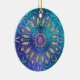 Zodiac Sign Capricorn Mandala Christmas Ornament A metallic blue green and lavender purple background with a colorful mandala and the astrological symbol for zodiac sign Capricorn the Goat at the center.