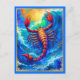 Postcard in an illustration of the water sign Scorpio showcasing a vivid red scorpion emerging from swirling ocean waves, symbolizing emotional depth and resilience. The swirling blues and fiery colors reflect Scorpio’s passion and mystery.