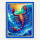 Journal in an illustration of the water sign Scorpio showcasing a vivid red scorpion emerging from swirling ocean waves, symbolizing emotional depth and resilience. The swirling blues and fiery colors reflect Scorpio’s passion and mystery.
