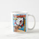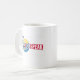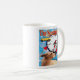 Zoe the Bilingual Dog loves to go for car rides. In the original photographs and artwork in this collage by ZoeSPEAK on this Mug, we see Zoe showing us, in English and French, a speedometer, with a little yellow car driving by against a blue sky background.