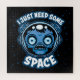 Vector cartoon illustration of a zombie astronaut with big eyes wearing a space helmet in shades of blue with I Just Need Some Space text. Tags: astronaut, cosmonaut, helmet, zombie, space, spaceman, monster, cadet, corpse, dead