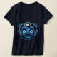 Vector cartoon illustration of a zombie astronaut with big eyes wearing a space helmet with a cracked glass shield in shades of blue. Tags: astronaut, cosmonaut, helmet, zombie, space, spaceman, monster, cadet, corpse, dead