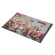 Purchased for a sister who throws Halloween block parties. Even with all the other stuff she has for this, I know she does not have this Exact one. Yeah personalization! Placemat has nice heft and is seamed around the edges well. Purchase complementary items too. Print is clear and well centered.