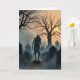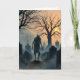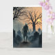 A ragged zombie shambles through an abandoned graveyard on this creepy and spooky Halloween card.