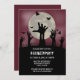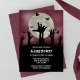 Set the tone for a night of fright with this eerie Halloween party invitation! Featuring five decaying zombie hands clawing their way up from the earth beneath a glowing full moon, this design is the perfect blend of creepy and cool. Silhouetted bats swirl in the haunted night sky, adding to the undead atmosphere. Whether you're throwing a costume bash, haunted house event, or just love all things spooky, this invitation is sure to thrill your guests from the moment it arrives.