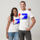 The shirt is good quality and fits just fine, but the colors of the printing are not as bright as in the sample photo. Not the best. The colors are a lot brighter in the sample photo; when I received the shirt they appeared faded. The red looks a little more pink and the blue is a lot lighter. N.B. I did not wash the shirt yet.