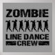A group of zombies dancing in a line. They are surpassed by the phrase "Zombie Line Dance Crew"