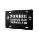 Zombie Outbreak Response Team Personalized - add your own unit or state or other text .. put this cool zombie apocalypse fun license plate on your car and have people believe you're part of the elite zombie killer tear .. zombie products from Ricaso