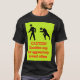 My 11 yo wore adult XL (5’7” 165#). The 8yo is small framed. She wore adult small and tied it in the back. Grandma wore adult large with long sleeve shirt underneath. Tall girl adult medium. Dark haired male adult large. Good quality dark Heather gray, Gildan brand shirt. -it was next up from basic choice and cost about $20 per shirt. Not too thick or thin. Washed and dried well, no major shrinkage. Not see-through. Can wear a bra under it fine. Screen print is just as shown and well done, front and back.
