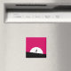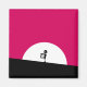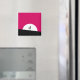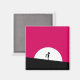 A magnet with a cool zombie dude. Pink and black bold vibrant color scheme. A zombie silhouette with arms outstretched on the hunt for brains. A big white moon illuminates from behind.