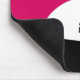 A personalized mouse pad with a cool zombie creature. Pink and black bold vibrant color scheme. A zombie silhouette with arms outstretched on the hunt for brains. A big white moon illuminates from behind.