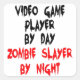 This eerie bloody text design featuring phrase "Video Game Player by Day Zombie Slayer by Night" is perfect for any video game player that loves zombies!
