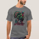 My 11 yo wore adult XL (5’7” 165#). The 8yo is small framed. She wore adult small and tied it in the back. Grandma wore adult large with long sleeve shirt underneath. Tall girl adult medium. Dark haired male adult large. Good quality dark Heather gray, Gildan brand shirt. -it was next up from basic choice and cost about $20 per shirt. Not too thick or thin. Washed and dried well, no major shrinkage. Not see-through. Can wear a bra under it fine. Screen print is just as shown and well done, front and back.