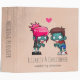 A unique and different idea for a wedding - zombie theme! A wedding planner with a cute illustration with a zombie couple, arms reaching out toward each other. A pink heart above their heads. Cute and adorable while also creepy and weird. Personalize with your name(s) and custom title.
