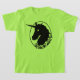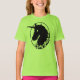 This strange design features an undead, zombie unicorn with a garland of skulls.