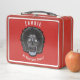 This is a standard metal lunchbox that appears to work just fine. We designed this box ourselves with an uploaded photo and custom text on the front and back. It looks absolutely beautiful except the front of the lunchbox is not centered like it shows in the photo. The print borders don't align with the inset flat part of the box where the preview photo online showed it perfectly centered in there. The back looks nice and centered though.