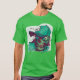 My 11 yo wore adult XL (5’7” 165#). The 8yo is small framed. She wore adult small and tied it in the back. Grandma wore adult large with long sleeve shirt underneath. Tall girl adult medium. Dark haired male adult large. Good quality dark Heather gray, Gildan brand shirt. -it was next up from basic choice and cost about $20 per shirt. Not too thick or thin. Washed and dried well, no major shrinkage. Not see-through. Can wear a bra under it fine. Screen print is just as shown and well done, front and back.