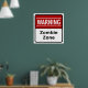 Warning - Zombie Zone - red, white and black warning sign style poster.